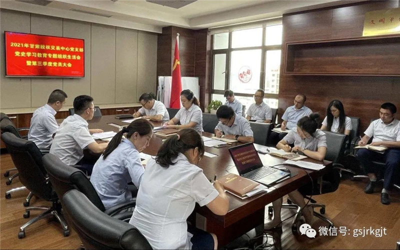 近日,甘肅股權交易中心黨支部緊密圍繞“學黨史、悟思想、辦實事、開新局”主題,召開黨史學習教育專題組織生活會暨第三季度黨員大會,會議由支部書記樊亞娟主持,全體黨員及員工參加。會上,樊亞娟首先對黨支部半年以來的工作情況進行了總結,通報了黨支部委員會檢視問題情況,并帶頭開展個人對照檢查。隨后,全體黨員依次分享了自己在黨史學習教育中的收獲和感悟,對標黨史學習目標,從發揮黨員先鋒模范作用、立足崗位、履職盡責等方面進行深刻的自我剖析,檢視自身存在的問題和差距,深入開展了批評與自我批評。最后,樊亞娟表示,此次專題組織生活會大家談得到位深刻,既主動剖析自己,又開展相互批評,會議開得嚴肅、認真、富有成效,達到了紅紅臉、出出汗、排排毒的效果,幫助全體黨員在思想上補了“課”,精神上補了“鈣”。下一階段大家要繼續加強理論學習,不斷提升思想覺悟,認真整改問題,不斷找準努力方向,力求在政治上有明顯提高,思想上有明顯進步,工作中有明顯提效。