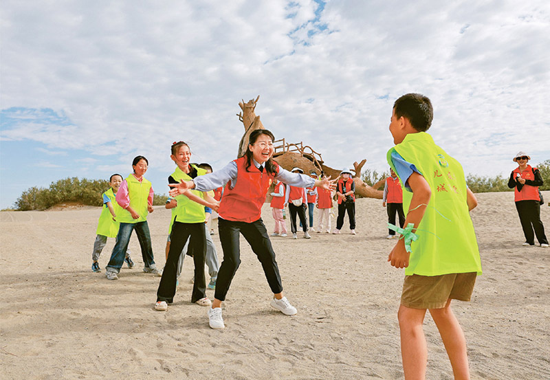 做好思想政治工作,需要增強服務意識,解決群眾實際困難。近年來,甘肅實施“結對幫扶·愛心甘肅”工程,組織黨員、干部與孤兒、困難重度殘疾人、特殊困難群眾結對認親,積極開展關愛幫扶工作。圖為2024年8月6日,酒泉市金塔縣“愛心媽媽”正在與結對兒童一起做游戲。(通訊員曹紅祖)