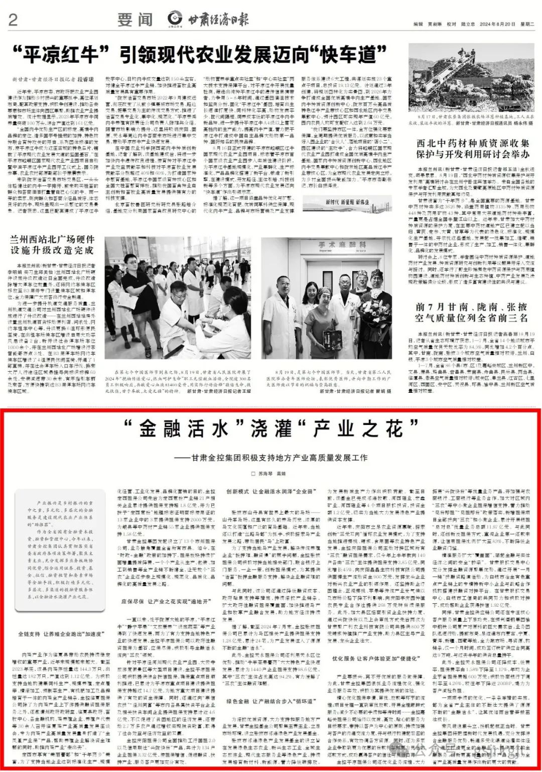 作為全省國有金融資本投資、融資和管理中心,今年以來,甘肅金控集團認真貫徹落實省委省政府各項決策部署,聚焦主責主業,充分發揮多業務板塊協同優勢,綜合運用證券、投資、基金、征信、融資租賃和要素市場等金融手段,積極打造多元化、多層次、多渠道的投融資服務體系,以金融活水澆灌產業之花。