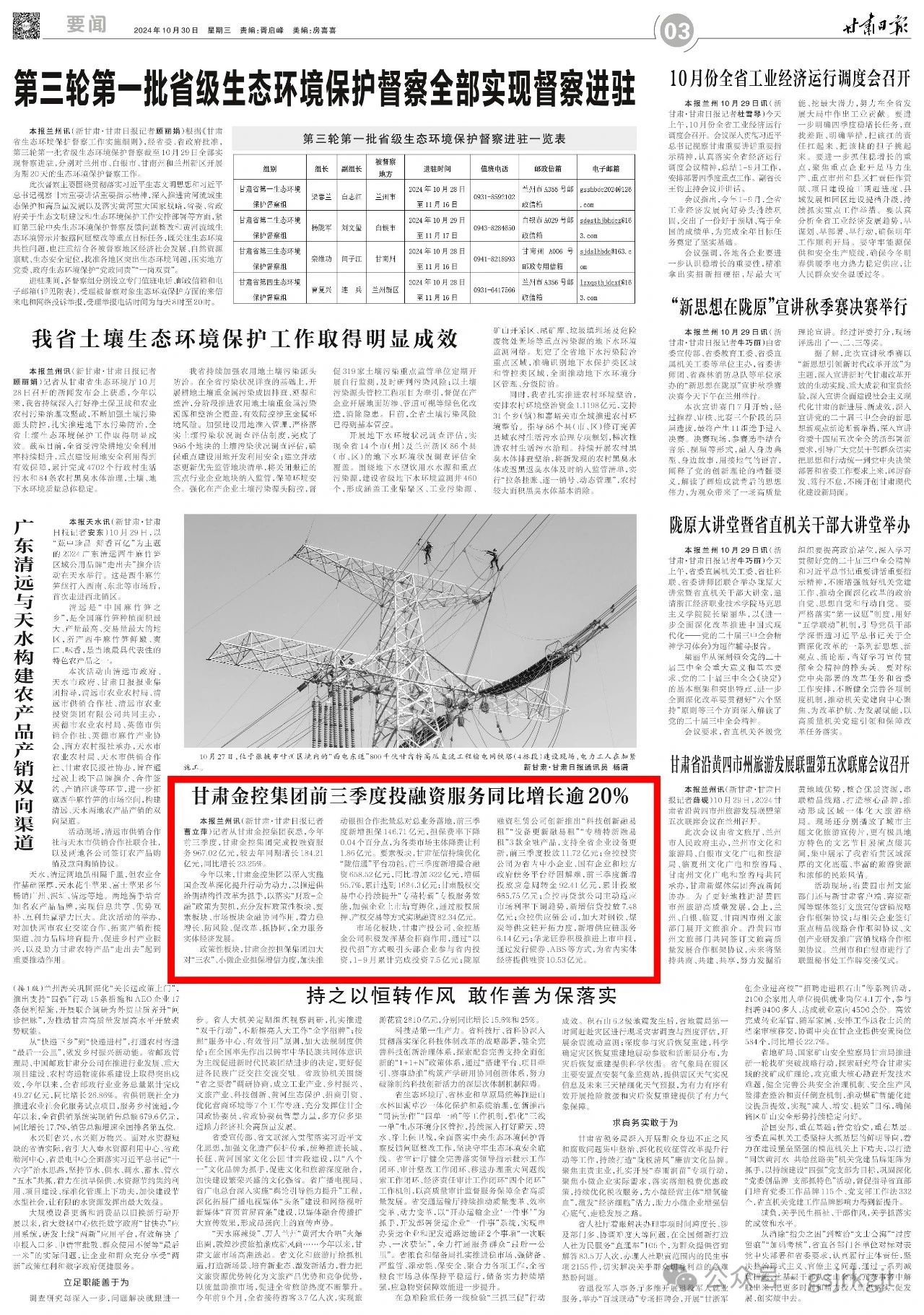 967.02億元!前三季度甘肅金控集團投融資服務同比增長逾20%