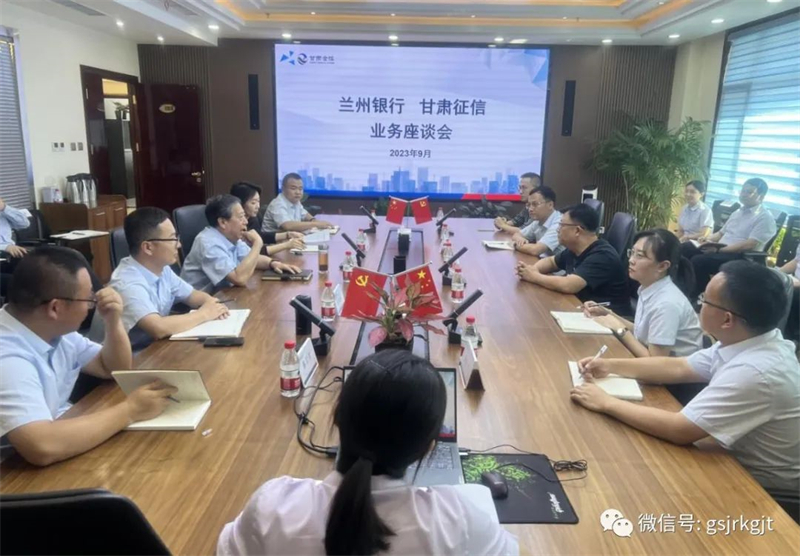 近日,甘肅征信與蘭州銀行舉行業務交流座談會。座談會上,蘭州銀行公司部總經理李勝龍及其風險管理部、大數據部、科技部和信貸項目組等相關人員出席會議。甘肅征信董事長陳志遠主持會議,總經理白莉、副總經理王亞斌以及相關人員參加會議。