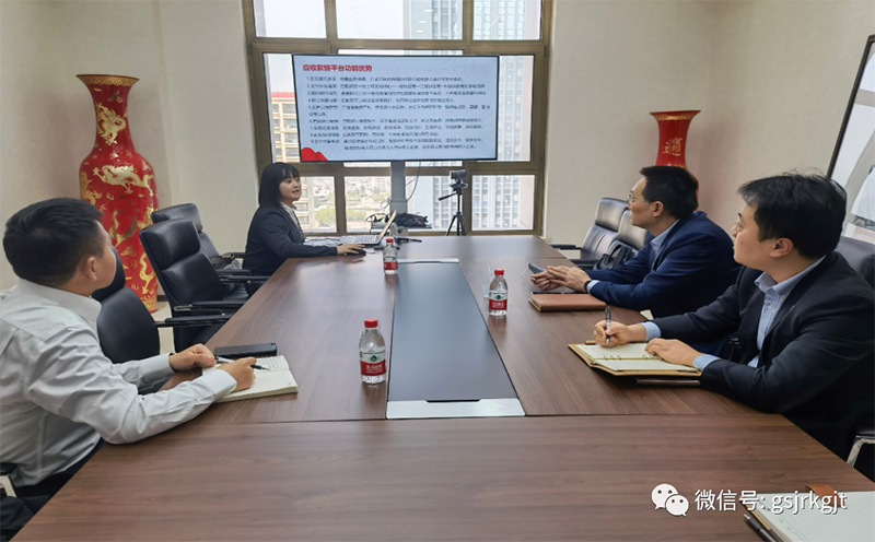 近日,浙商銀行蘭州分行杜金洋、王成成到訪甘肅金控供應鏈管理服務有限公司進行業務交流培訓??偨浝砝罹S峰主持交流培訓會,相關部門人員參加會議。