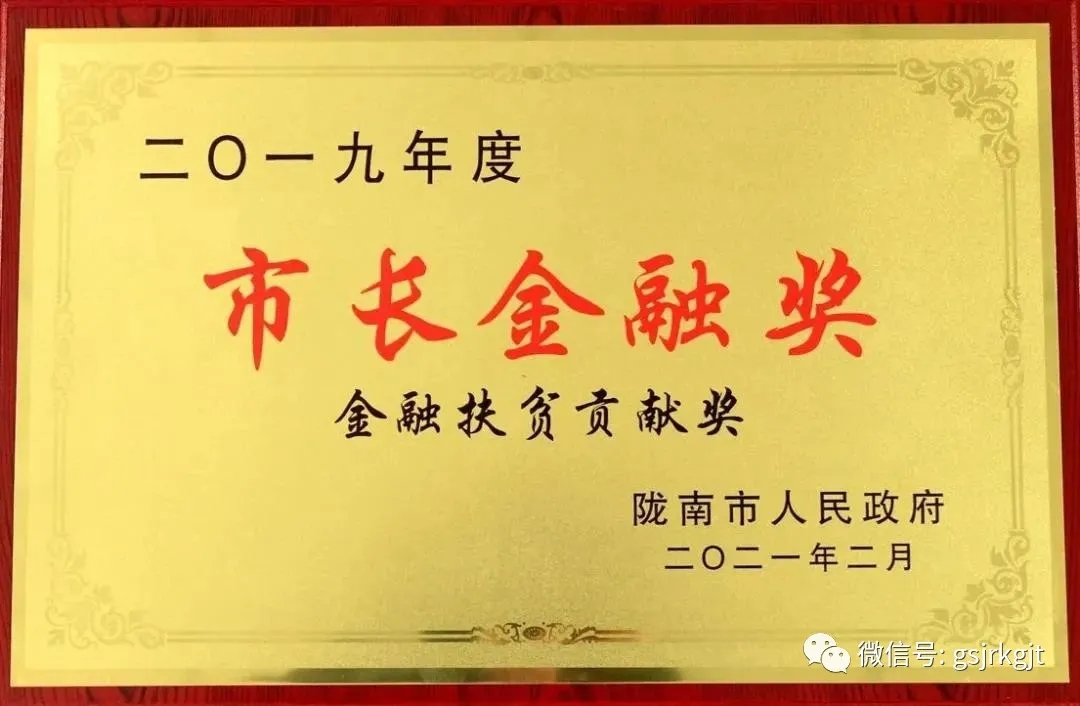 薛小勇授予金控隴南擔?!?019年度市長金融獎”